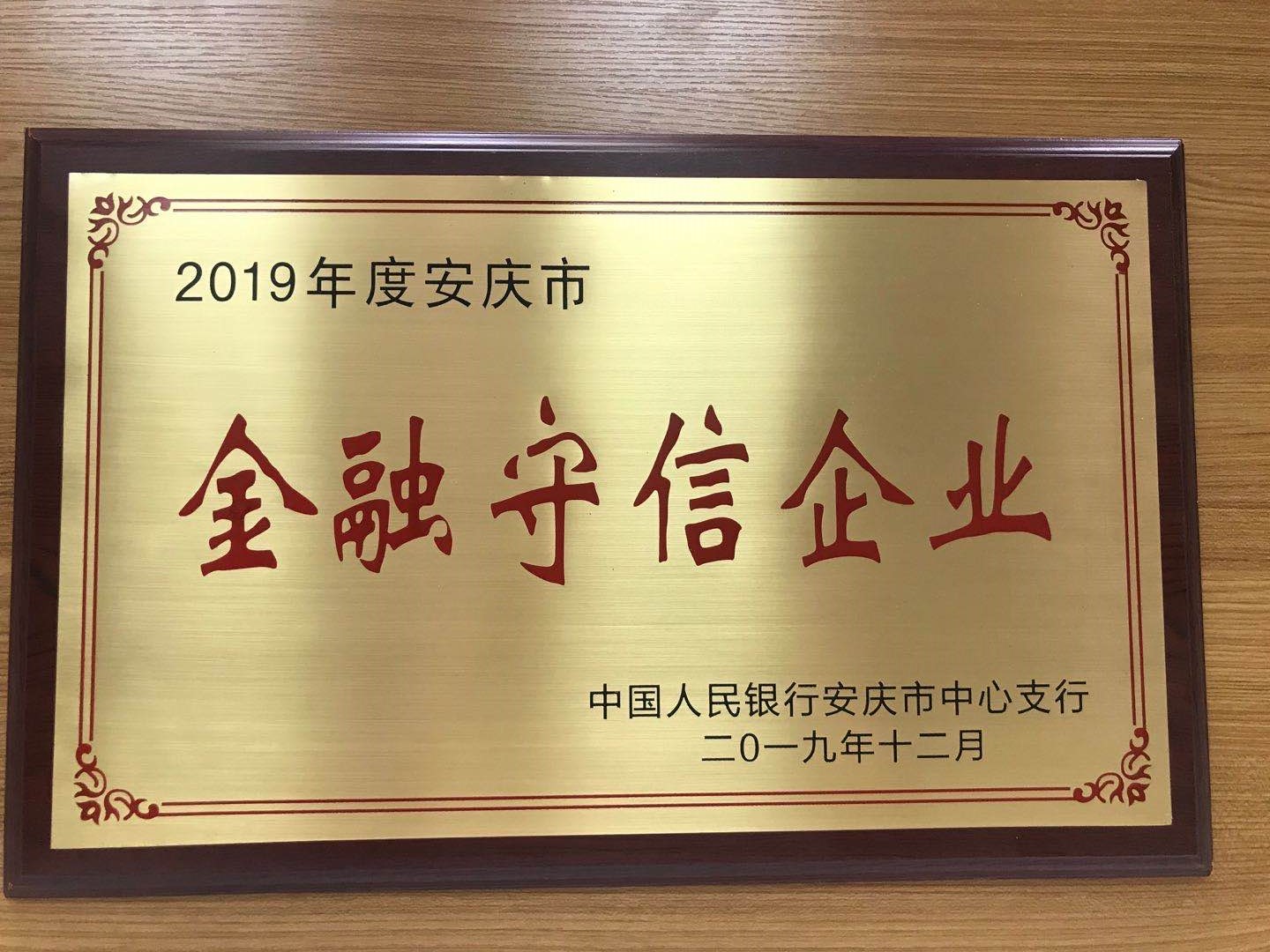 安慶港華再獲“金融守信企業(yè)”稱號