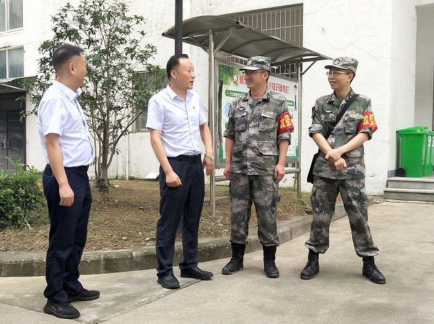 在部隊(duì)駐扎地安職院,何族興一行詳細(xì)了解了部隊(duì)官兵的駐地環(huán)境、食宿安排等方面情況,并送去換洗衣物、飲用水、防蚊及防暑用品等價(jià)值近3萬元的生活物資。