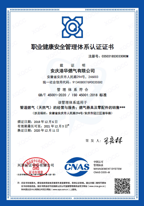 日前,安慶港華順利通過了“質(zhì)量、環(huán)境、職業(yè)健康安全管理(GB/T19001、GB/T14001、GB/T45001)”三體系認(rèn)證審核。