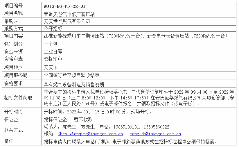 安慶江淮新能源乘用車二期、安慶新普電器設(shè)備燃?xì)夤こ淘O(shè)備采購招標(biāo)公告 發(fā)布時間:2022-09-06    閱讀次數(shù):3961次