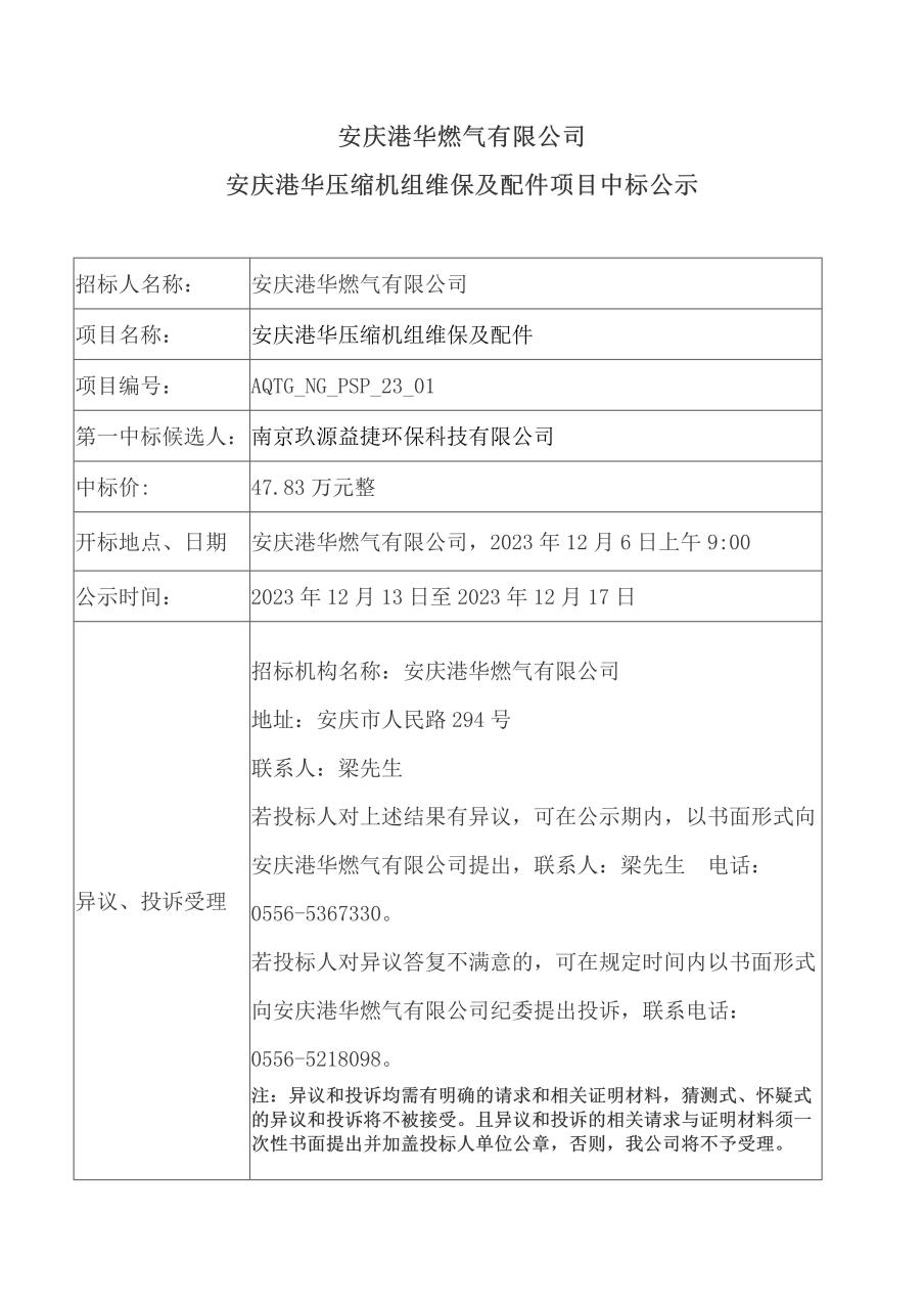 安慶港華壓縮機(jī)組維保及配件項(xiàng)目中標(biāo)公示 發(fā)布時(shí)間:2023-12-13    閱讀次數(shù):3207次