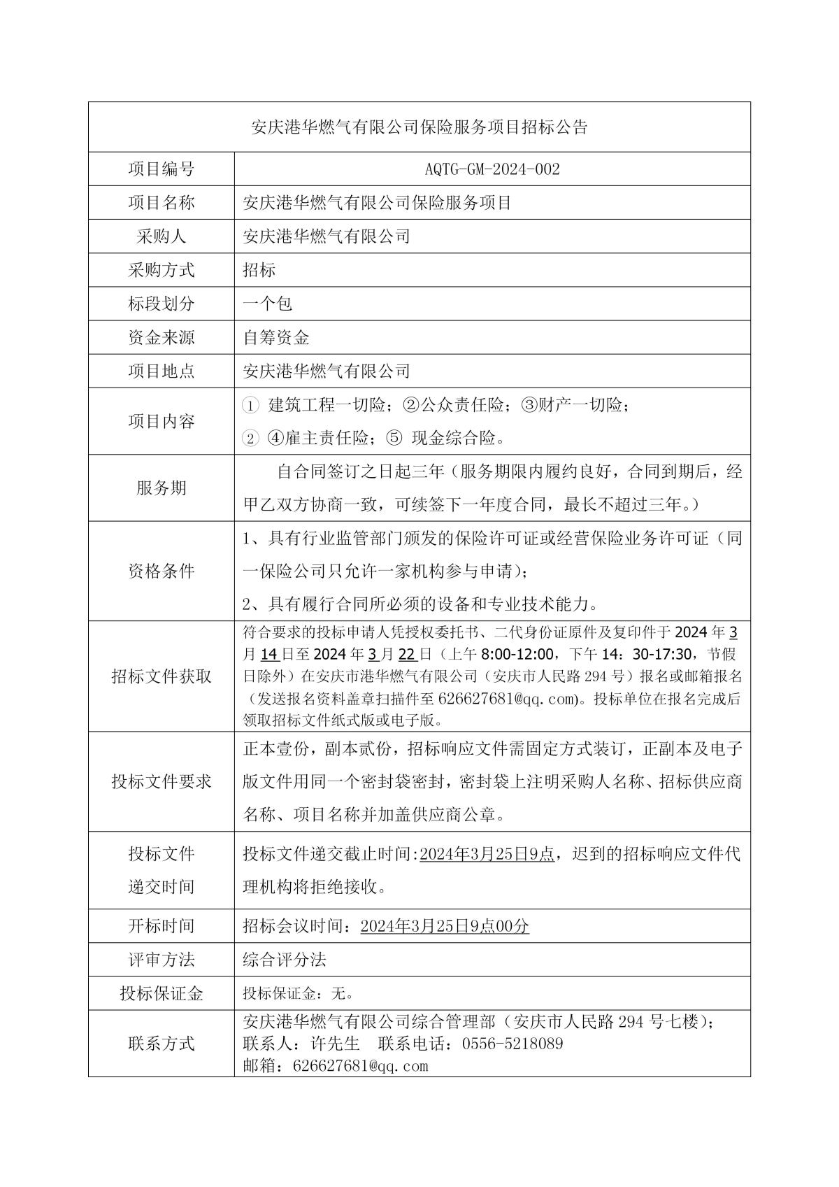 安慶港華燃?xì)庥邢薰颈kU(xiǎn)服務(wù)項(xiàng)目招標(biāo)公告 發(fā)布時(shí)間:2024-03-14    閱讀次數(shù):3501次