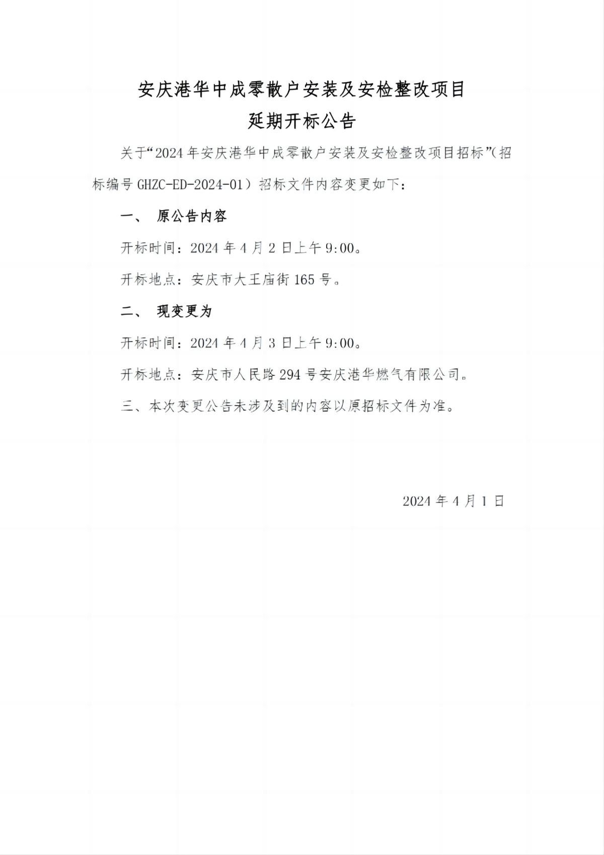 安慶港華中成零散戶安裝及安檢整改項目延期開標公告