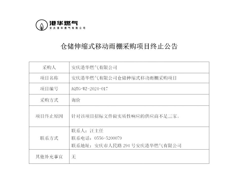 倉儲伸縮式移動雨棚采購項目終止公告 發(fā)布時間:2024-10-15    閱讀次數(shù):2905次