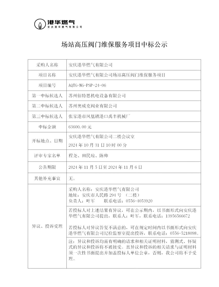 場站高壓閥門維保服務(wù)項(xiàng)目中標(biāo)公示