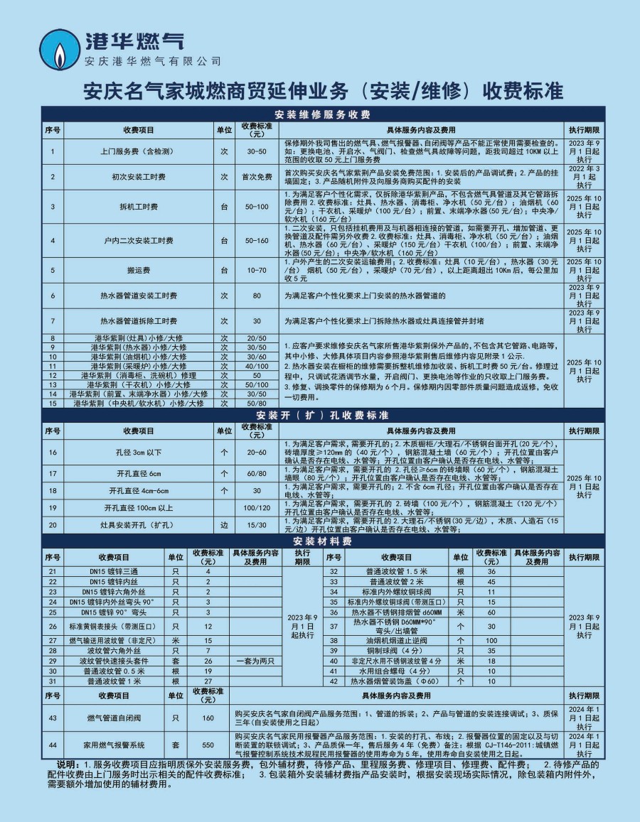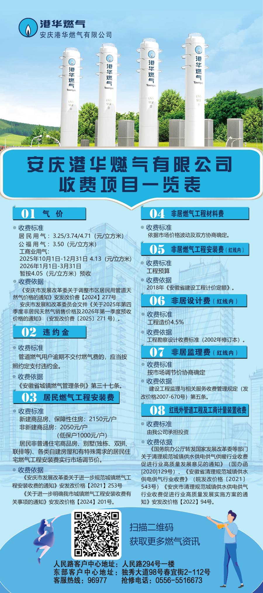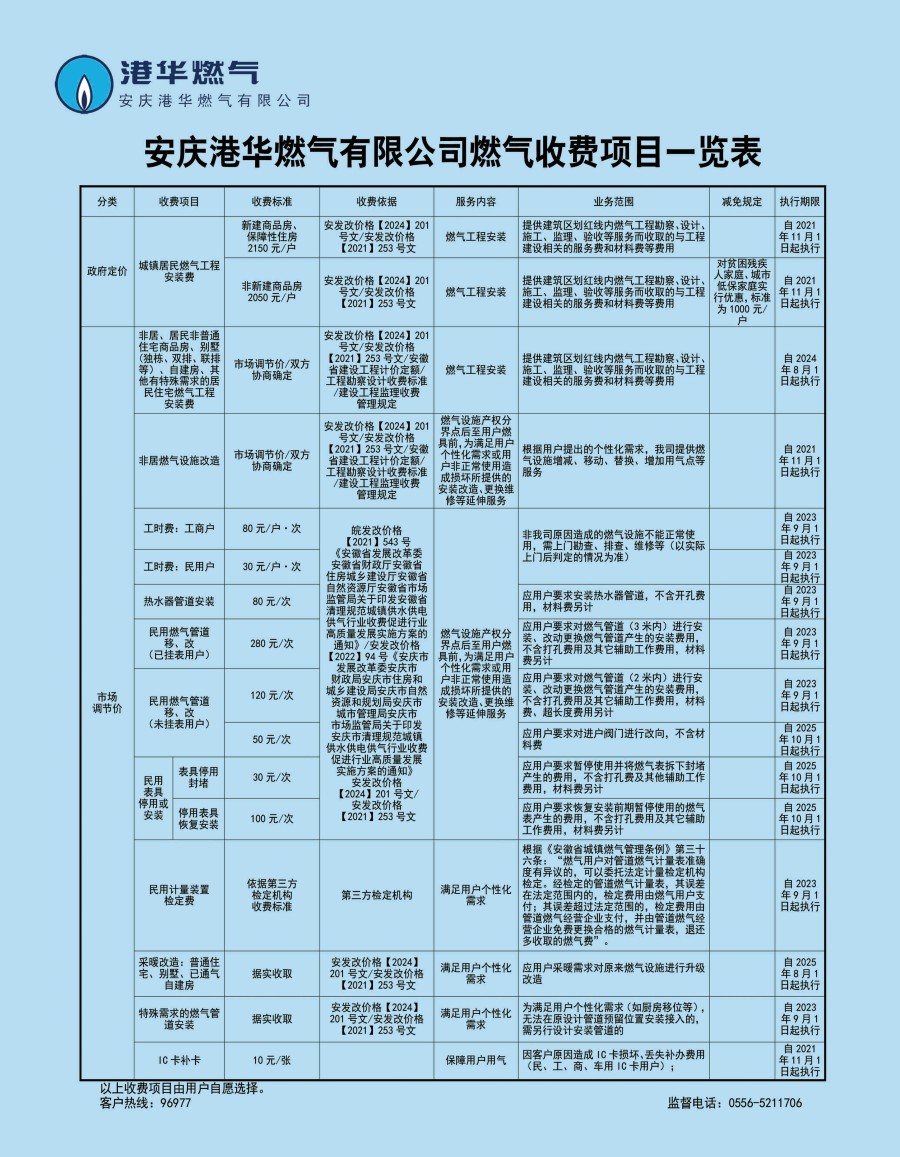 安慶港華燃?xì)庥邢薰臼召M(fèi)項(xiàng)目一覽表(2025) 發(fā)布時(shí)間:2025-10-10    閱讀次數(shù):8409次