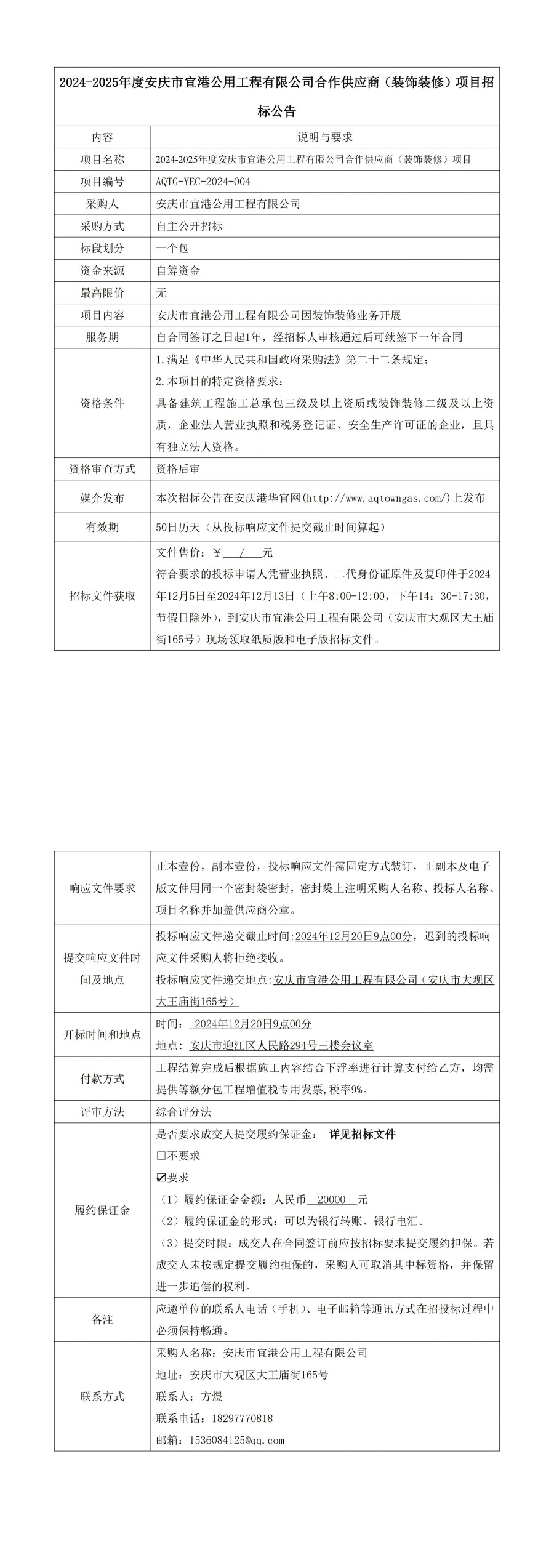 2024-2025年度安慶市宜港公用工程有限公司合作供應(yīng)商(裝飾裝修)項(xiàng)目招標(biāo)公告 發(fā)布時(shí)間:2024-12-06    閱讀次數(shù):3366次