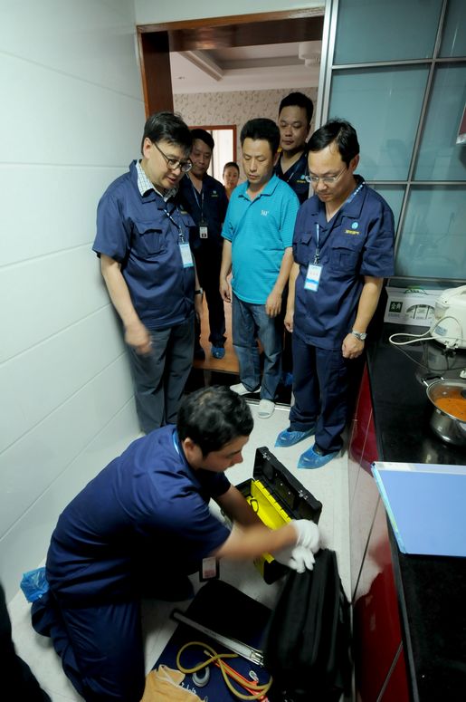 在安慶巡查的第三站——綠地迎江世紀(jì)城小區(qū),主要展示的是小區(qū)戶內(nèi)集中安檢。進(jìn)入小區(qū),映入眼簾的是一排排安檢宣傳、咨詢、安全燃?xì)饩哒故緟^(qū),宣傳展板向居民展示燃?xì)獍踩褂弥R、燃?xì)馐鹿示炯鞍踩細(xì)饩叩氖褂玫瘸WR,工作人員細(xì)致耐心的解答居民的咨詢,并發(fā)放《燃?xì)饪蛻舭踩脷馐謨浴贰j惪偛玫燃瘓F(tuán)領(lǐng)導(dǎo)跟隨安檢員來到客戶家中,觀看戶內(nèi)安檢的每個環(huán)節(jié),當(dāng)安檢人員規(guī)范地完成整個安檢流程后,陳總裁給予了“很好,不亞于香港水平”的高度評價。