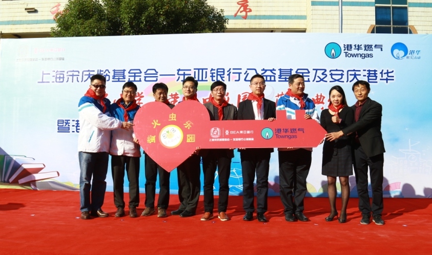 11月1日,港華燃?xì)饧瘓F(tuán)攜手上海宋慶齡基金會(huì)—東亞銀行公益基金,在太湖縣大石小學(xué)舉行“螢火蟲樂園”落成典禮暨港華集團(tuán)華東地區(qū)“輕風(fēng)行動(dòng)”揭牌儀式。來自安慶市扶貧辦、市住建委、太湖縣政府、縣教育局的有關(guān)領(lǐng)導(dǎo),以及東亞銀行(中國(guó))、港華燃?xì)饧瘓F(tuán)、港華集團(tuán)華東義工總隊(duì)、安慶港華燃?xì)獾?/span>70余位嘉賓和義工出席并見證了典禮儀式。